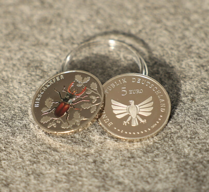 “Die Bedeutung der Insekten für unsere bayerische Natur kann nicht hoch genug eingeschätzt werden: Der Schutz unserer Umwelt liegt uns besonders am Herzen, denn sie ist die Grundlage für eine nachhaltige Entwicklung. Insekten spielen zur Erhaltung unseres vielfältigen Naturerbes und für das ökologische Gleichgewicht eine entscheidende Rolle. Der Hirschkäfer gehört leider zu den stark gefährdeten Insektenarten in unserer Region. Mit der neuen Sammlermünze würdigen wir dieses besondere Wesen und machen gleichzeitig auf das Insektensterben aufmerksam“, betont Finanz- und Heimatminister Albert Füracker anlässlich der Ausgabe der neuen Sammlermünze am Donnerstag (26.9.). „Ich freue mich, dass Bayerns Hauptmünzamt diese streng limitierte Sammlermünze im Nominalwert von 5 Euro prägt und dieses wichtige Thema weiter in den Vordergrund rückt“, so Füracker weiter.