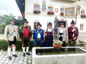 Bataillons-Kommandant Hans Rucker, der seit letztem Jahr auch stellvertretender Landeshauptmann vom Bund der Bayerischen Gebirgsschützen ist, erläuterte am Törwanger Dorfplatz am Brunnen mit der Mutter Gottes das neue Funktionsabzeichen und sagte: „Wie schon auf unserer Standarte zeigt das Abzeichen den Chiemgau-Adler. Geschaffen wurde dieser von Peter Pfaffinger aus Aschau i. Chiemgau, die den Adler umgebende Fassung wurde von Goldschmied Korbinian Gabriel, ebenfalls aus Aschau entworfen und gefertigt. Insgesamt ist das Funktionsabzeichen ein handwerkliches Kunstwerk“. Ausgehändigt wurde das Zeichen von Gauhauptmann Hans Rucker an Sepp Kirner (Bataillons-Waffenwart), an Uwe Hecht (Schriftführer und Adjutant des Gauhauptmannes), an Adi Auer (Standartenträger), Brigitte Meier (Marketenderin) und Günther Hochhäuser (stellvertretender Bataillons-Kommandant). Die Freude der gelungenen Neuanschaffung wurde noch durch ein gemütliches Beisammensein beim Entenwirt Peter Schrödl (selbst aktiver Gebirgsschütze und Schatzmeister der GSK Samerberg) in Törwang zum Ausdruck gebracht.