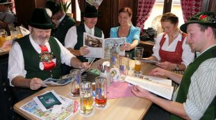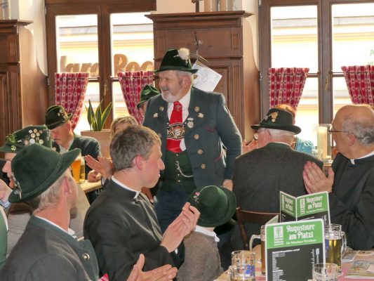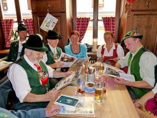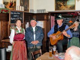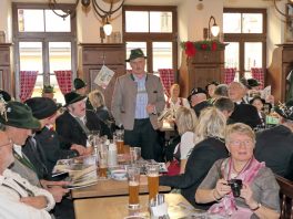Im Augustiner am Platzl mitten in München trafen sich Schützen, Gebirgsschützen, Trachtler sowie Vertreter von Kirche, Bayernbund , Bayerischer Rundfunk und Bayernpartei zusammen mit vielen weiteren Leuten, denen das Wohl Bayerns ein stetiges Anliegen ist, um bei der Vorstellung des 31. Oberbairischen Fest-Täg- und Alte-Bräuch-Kalenders von Brigitte Raab und ihrer Familie dabei zu sein. Ab sofort ist der Kalender mit 100 großformatigen Seiten, mit durchwegs farbigen Geschichten und Bildern und mit zweitausend Veranstaltungsterminen aus ganz Oberbayern im Buchhandel sowie beim Raab-Verlag in Iffeldorf, Tel 08801-915452 oder email: raab@raab-verlag.info. Bei der Zusammenkunft mit Weißwurst-Brotzeit stellten sich einige Leute vor, die zu besonderen Themen im Kalender beigetragen haben sowie Hildegard und Waggi Rehm mit einem gesungenen Ständchen.