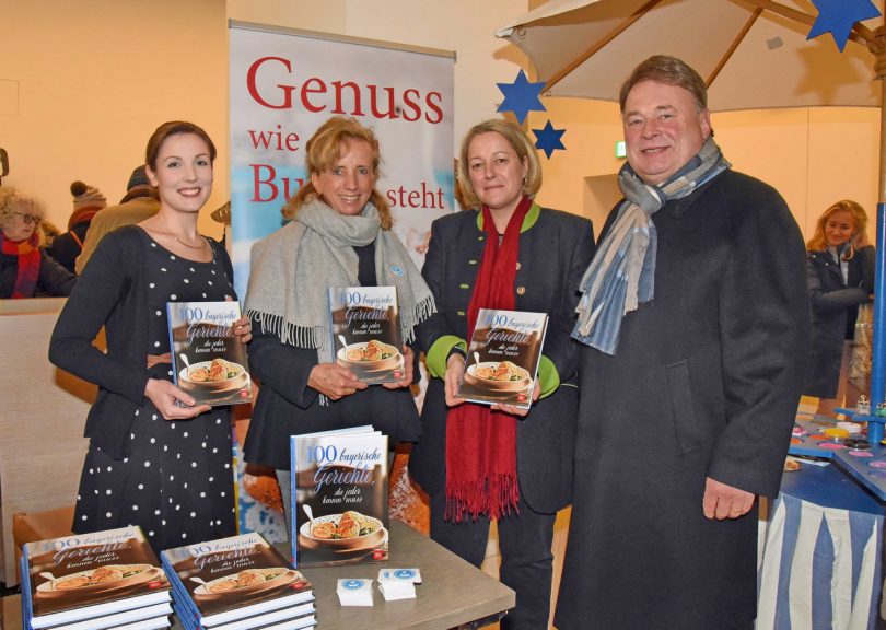 Foto Baumgart/StMELF zeigt den Minister mit v. l. Miriam Michalak, Christine Paxmann (beide blv-Verlag) und Anke Wehking (StMELF).