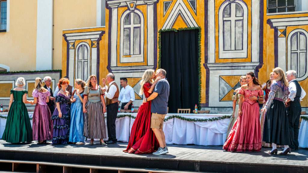 Die Mittagssonne brennt auf den historischen Marktplatz von Neubeuern, doch niemand denkt ans Aufgeben: Über hundert Mitwirkende – in Seide, Samt und Lederhosn – proben mit vollem Einsatz für ein ganz besonderes Theaterereignis: „Der Bayerische Jedermann“ kehrt zurück nach Neubeuern. Bereits zum sechsten Mal bringt die Theatergemeinschaft das preisgekrönte Mysterienspiel auf die Bühne – lebendig, bayerisch, mitreißend.