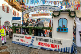 Für Lacher sorgten auch Wagen, die Alltagsärger satirisch verarbeiteten. Besonders treffend nahm eine Gruppe die schleppende Digitalisierung aufs Korn: Unter dem Motto „Digitales Bayern – Fax voraus“ und mit der Einblendung „Verbindung fehlgeschlagen“ wurde der Traum vom schnellen Netz persifliert – inklusive Spruch „Download läuft seit 1995…“ und dem Versprechen „Breitband kommt, versprochen!“. Genau dieser Mix aus Lokalkolorit und Zeitgeist machte den Neubeurer Faschingszug so unterhaltsam.