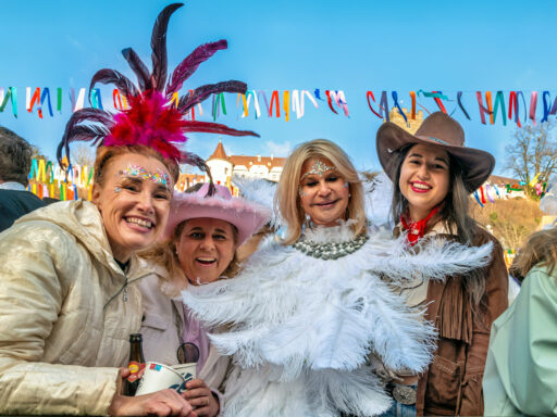 Was die Fotos zeigen sind nicht nur Totale und Wagen, sondern auch die Menschen im Fasching: Gardemädchen mit Federkronen, aufwändige Kopfschmucke, Make-up bis ins kleinste Detail – und immer wieder diese stillen Momente mitten im Trubel, wenn sich Familien, Freunde und ganze Gruppen für ein Foto sammeln. Genau diese Nähe zeigte: Fasching ist hier nicht Kulisse, sondern Gemeinschaft.