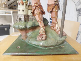 Vor allem die rückwärtige Ansicht des Heiligen läßt so manche Betrachter verdutzt schmunzeln