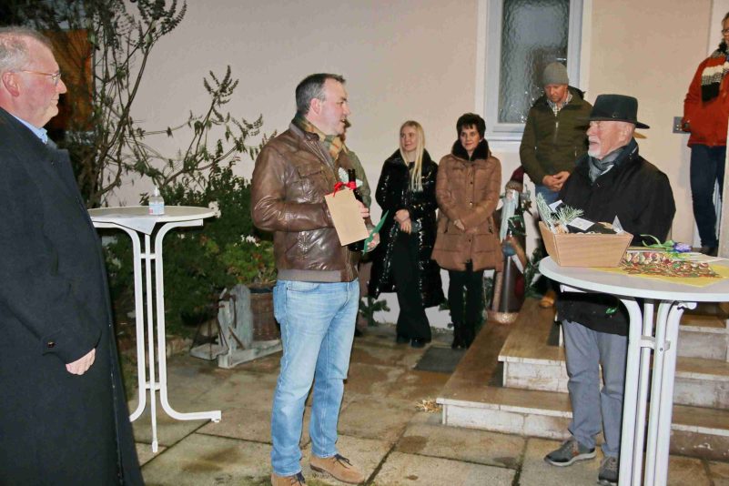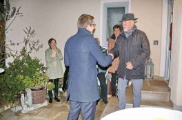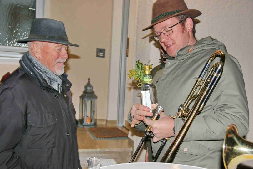 Bericht und Bilder: Thomas Schwitteck – sie zeigen Eindrücke von der Geschenkübergabe an den Altbürgermeister  sowie Neubeurer Musikanten mit einem Ständchen