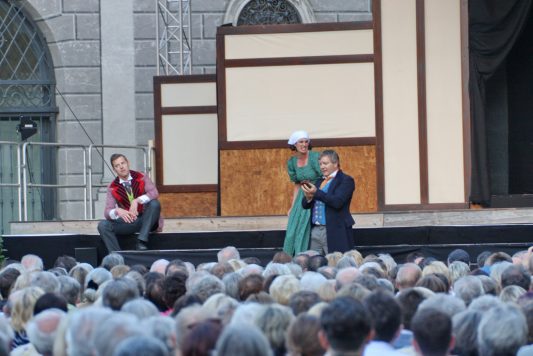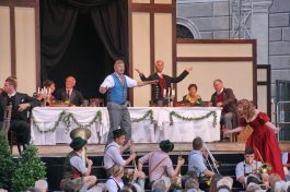 Rund 1200 Besucher verfolgten gestern gespannt des Geschehen des Jedermann-Spiel auf der von den Spielern und der Theatergemeinschaft Neubeuern selbst erstellten Bühne im Brunnenhof der Residenz bei herrlichem Sommerwetter. Das Theaterspiel um den “Jedermann” von der Spielgemeinschaft der Marktgemeinde – einstudiert unter der Leitung von Klarei Baumgartner – wurde in den zurückliegenden Jahren am Marktplatz in Neubeuern, in der Beurer-Halle, im Schloß Neubeuern , im Passionshaus in Erl und auf Herrnenchiemsee aufgeführt. In München findet heute Freitag 13 Juli um 20 Uhr im Brunnenhof der Residenz eine weitgere Aufführung statt. Karten sind an der Abendkasse noch erhältlich.