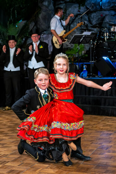 Nah dran am Glanz: das Kinderprinzenpaar bei der Präsentation auf der Bühne – festlich, konzentriert und sichtlich stolz.