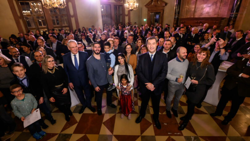 Bei einem Empfang im Kaisersaal der Münchner Residenz hat Ministerpräsident Dr. Markus Söder, MdL, am 21. November 2022 mit Innenminister Joachim Herrmann, MdL, Neubürgerinnen und Neubürger aus Oberbayern, Niederbayern, Schwaben und der Oberpfalz begrüßt. Ministerpräsident Dr. Markus Söder, MdL: „Über 500 neue deutsche und bayerische Staatsbürger aus rund 70 Nationen. Wir freuen uns sehr über den Zuwachs. Bayern ist lebenswert und weltoffen. Wir stehen für Frieden, Freiheit und gesellschaftliche Vielfalt: Leben und leben lassen ist unser Motto. Unsere Neubürger sind eine echte Verstärkung. Herzlich willkommen im Freistaat Bayern.“