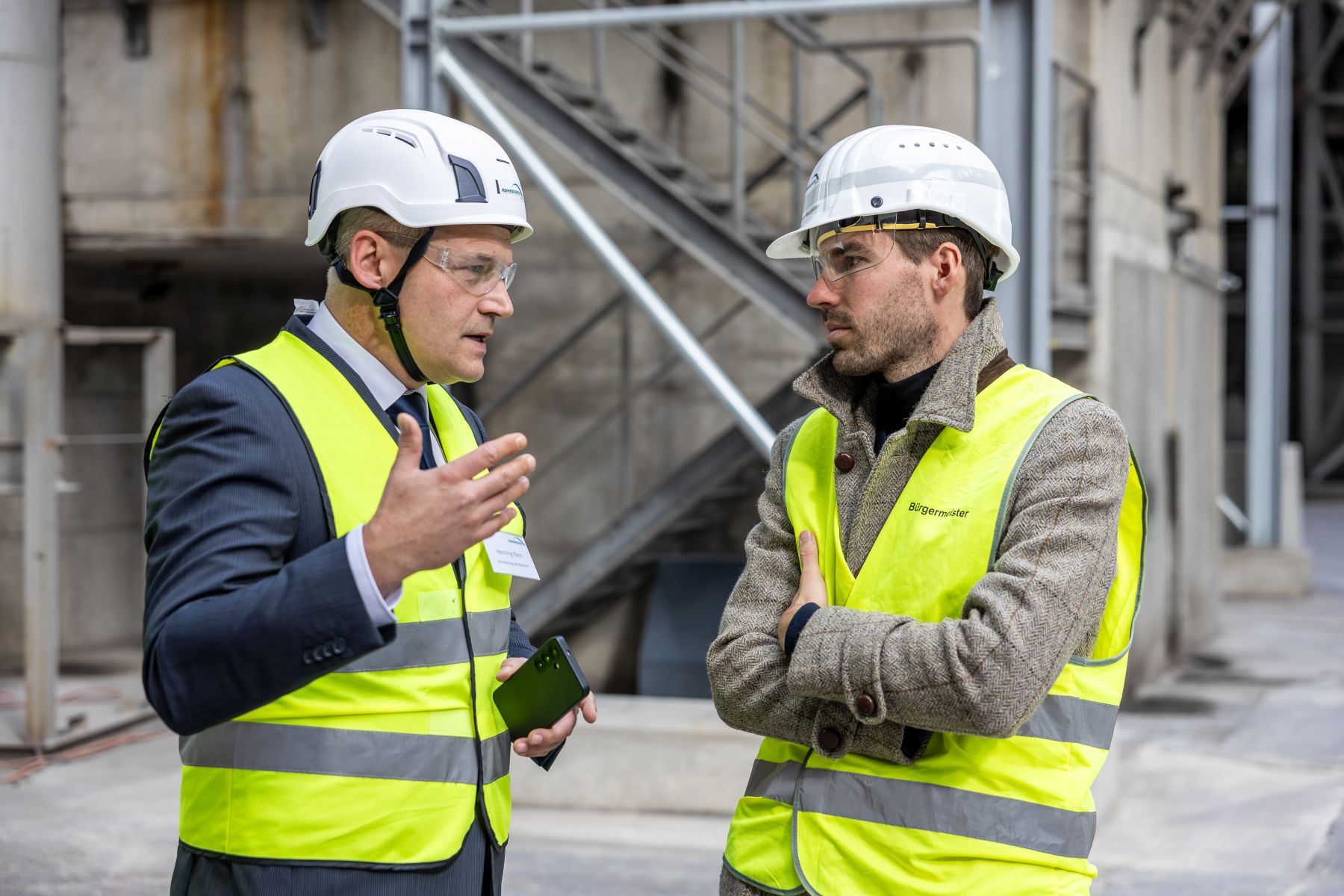 Von links: Henning Klein (Werksleiter Zementwerk Rohrdorf) und Simon Hausstetter (1. Bürgermeister der Gemeinde Rohrdorf).