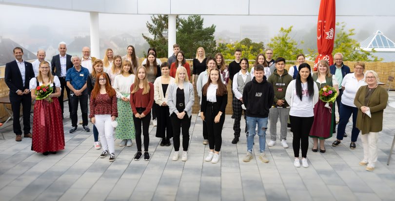 Bericht und Foto: RoMed Kliniken – Die Schulklasse des ersten MTRA-Ausbildungsjahrgangs wurde von Oberbürgermeister Andreas März (1.v.l.) und den Vertretern des RoMed Klinikverbundes herzlich begrüßt. Zum Zeitpunkt der Fotoaufnahmen wurden die jeweils gültigen Hygienemaßnahmen eingehalten.