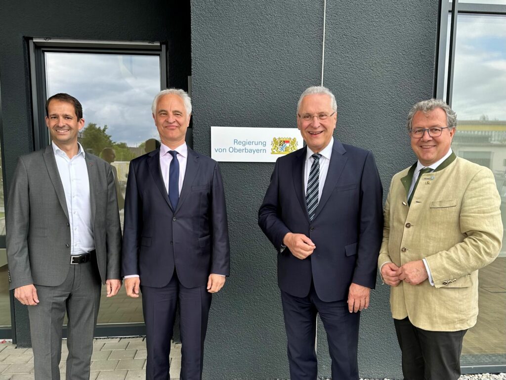 (v.l.n.r.): Oberbürgermeister Andreas März, Dr. Konrad Schober, Präsident der Regierung von Oberbayern, Innenminister Joachim Herrmann, Landtagsabgeordneter Klaus Stöttner
