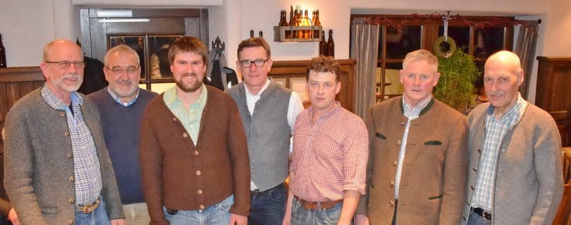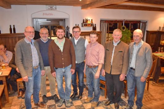 Zu der gut besuchten Zusammenkunft konnte Franz Daxlberger auch den Vorsitzenden des Almwirtschaftlichen Vereins Oberbayern (AVO), Georg Mair und dessen Geschäftsführer Hans Stöckl willkommen heißen. Diese erinnerten daran, dass der AVO im vergangenen Jahr nicht nur mit Bartholomäus Mayer, sondern mit AVO-Ehrenvorsitzenden Franz Steindlmüller, mit den ehemaligen Bezirksalmbauern Alois Speicher (Reit im Winkl) und Max Pfaffinger (Aschau i. Chiemgau) und mit dem langjährigen almwirtschaftlichen Berichterstatter Werner Hohenauer wertvolle Mitstreiter verloren hat. Politisch hat sich für die Almbauern der Wechsel des Ministerpräsidenten-Amtes zu Dr. Markus Söder ergeben, desweiteren hat Michaela Kaniber die Leitung des Amtes vom Landwirtschaftsministerium übernommen. Georg Mair, Erster Vorsitzender des AVO, berichtete ausführlich zum Almjahr 2018, das insgesamt gut war. „Nach viel Schnee gab es im April viel Sonnenschein mit weit überdurchschnittlichen Temperaturen, der Sommer war ungewöhnlich trocken, dennoch gab es eine lange Weidezeit“, so Georg Mair, der noch an die heuer in Garmisch-Partenkirchen stattgefundene Internationale Almwirtschaftstagung sowie an die Hauptalmbegehung und an den Almbauerntag in Schliersee erinnerte. Zum Dauer- und Sorgen-Thema „Wolf“ sagte Mair: „Es ist weiterhin keine befriedigende Lösung in Sicht trotz Beratungen zu einem Aktionsplan, es ist weder die Entnahme von Wölfen noch der Schutz der Weidetiere praktikabel gelöst. Beispiele aus Nachbarländern zeigen, dass dringend und rechtzeitig gehandelt werden muss“. Bürgermeister Georg Huber vom Samerberg, der zusammen mit seinem Amtskollegen Sepp Oberauer aus Nussdorf am Inn die Neuwahlen für die nächsten fünf Jahre leitete, würdigte in seinem Grußwort die gute Zusammenarbeit mit den Almbauern und ergänzte dies mit dem Hinweis, dass auf dem Samerberg ein geplanter Almthemenweg die Touristen noch besser über die Landwirtschaft und deren Anliegen aufklären soll. Ehe sich in der allgemeinen Aussprache (unter anderem zur Ausbringung der Gülle mit Schleppschlauchtechnik in Berggebieten) die Almbauern untereinander austauschen konnten, erinnerte der vormalige AVO-Geschäftsführer Michael Hinterstoißer mit Lichtbildern an die heurige Internationale Almwirtschaftstagung sowie an die Hauptalmbegehungen 2003 und 2017 auf dem Samerberg.