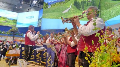 Groß war die Beteiligung von Blasmusikanten in der Bayernhalle der Grünen Woche in Berlin – davon noch einen letzten Bilderbogen mit Aufnahmen der verschiedenen Gruppen, die nach Berlin fuhren, um dort den Berlinern und ihren Gästen aufzuspielen – und dies nicht nur in der Bayernhalle, sondern auch bei der Landschau der Agrarsozialen Gesellschaft in der neuen Halle 27.
