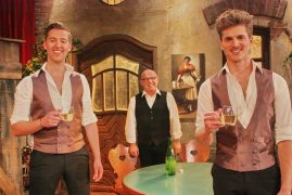 Die charmanten Münchner Schauspielerinnen Johanna Bittenbinder und Petra Auer widmen sich in Wort und Gesang ganz der Spezies „Mann“ – und solistisch und bitterböse besingt Bianca Bachmann den Weihnachtsmann auf der Reeperbahn. Aus dem Chiemgau kommend, feiert der Oberbayer Keller Steff seine Premiere in den Brettl-Spitzen und bringt neben seiner Gitarre auch gleich einen Bulldog und ein Kaibe mit. Publikumsliebling Martin Frank präsentiert mit Schmalz und Gefühl Operetten-Couplets und lässt uns teilhaben am harten Schicksal derer, die in seiner Heimat mit Mitte Zwanzig noch keine Doppelhaushälfte ihr eigen nennen. Zum zweiten Mal begeistert das junge fesche Duo Lausdeandln nicht nur die Herren der Schöpfung. Die beiden Damen geben interessante Einblicke in die Welt des Flirtens. Wir feiern noch eine weitere fulminante Premiere: der fränkische Mentor Sebastian Reich stellt seine stimmgewaltige außergewöhnliche Volkssänger-Elevin Amanda vor. Und alle Solisten werden virtuos begleitet von den vier kongenialen Musikern der Brettl-Spitzen-Musi. Griabig, bayerisch und deftig, das sind die Brettl-Spitzen. Die beste Garantie für einen kurzweiligen und fröhlichen Sonntagabend.