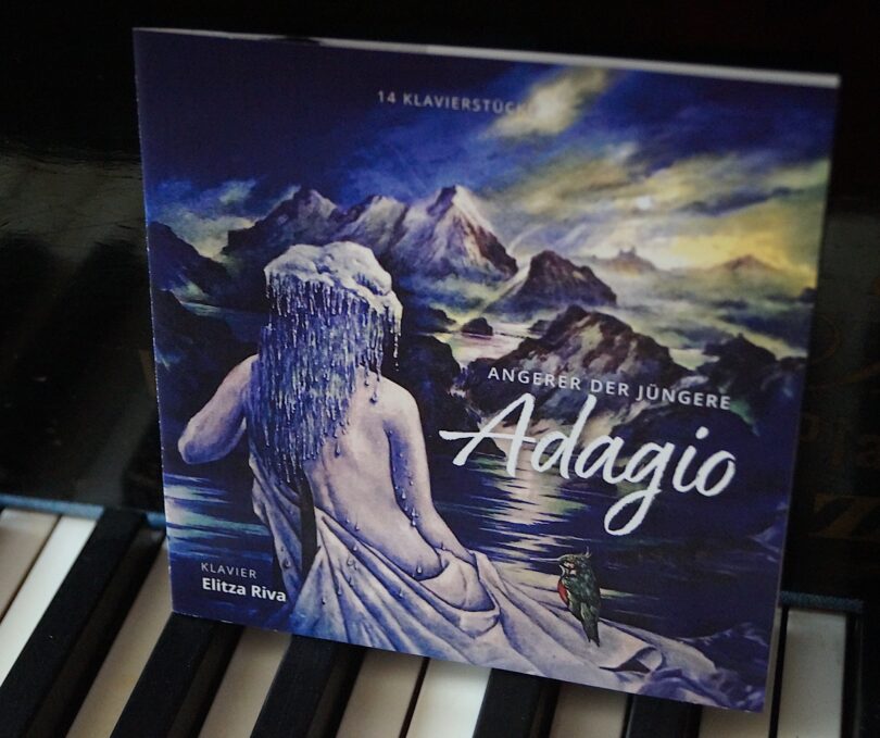 Unter dem Label Wiesenrand Classik stellt Walter Angerer der Jüngere eine neue CD vor. Unter dem Motto „Adagio“ spielte die Pianistin Elitza Riva aus Bulgarien 14 Klavierstücke ein, die es erlauben, meditativ in seine eigene Gefühlswelt einzutauchen. Titel wie „Im Wald“, „Kurzer Ausflug“, „Durch den dunklen Wald“ oder „Kleiner Spaziergang“ legen Zeugnis von Angerers Naturverbundenheit ab. „Weite Sicht im Tal“ löst Assoziationen zu dem Bild „Wanderer über dem Nebelmeer“ von Caspar David Friedrich aus dem Jahr 1818 aus und stellt zugleich eine Verbindung zur bildenden Kunst her, in der Angerer der Jüngere ebenso zu Hause ist, wie in der Musik und der Komposition. Zeugnis davon legt das Titelbild ab: Es ist eine Malerei des Komponisten und Künstlers, Angerer der Jüngere.