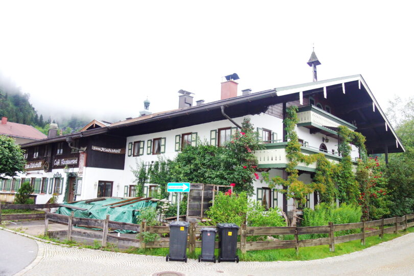 Das Gebäude Brunnenstraße 1 im Ortskern von Reit im Winkl wurde vom Landkreis Traunstein als Flüchtlingsunterkunft angemietet – links im Hintergrund das ehemalige Restaurant „Zum Kuhstall“ von Maria Hellwig
