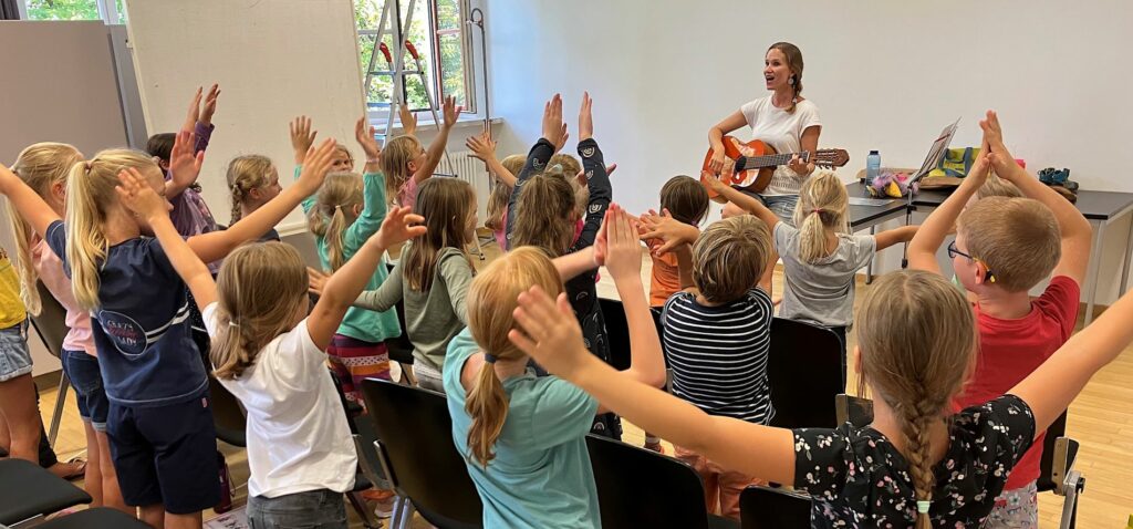Lisa Wagner leitet in der Musikschule Auer auch einen Kinderchor in Ainring, hier bei der Probe für den Familiengottesdienst beim Pfarrfest.