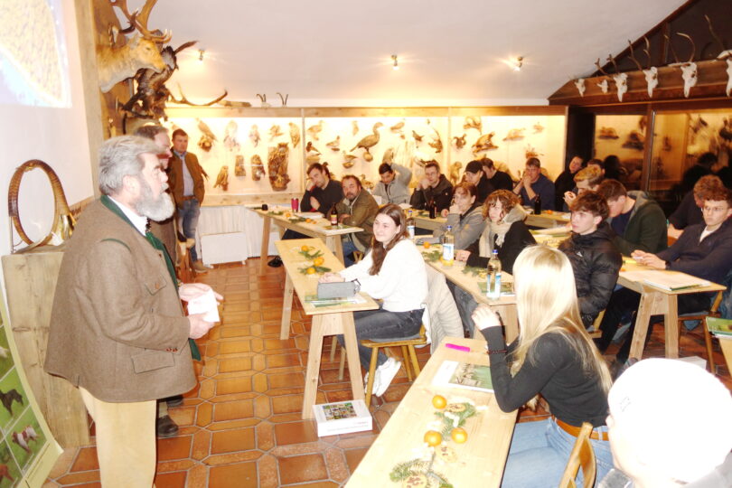 Zu den Formen der Jagd-Qualifizierungen gehören Lehrgänge, Seminare, Schießabende, Erste Hilfe Kurse für Jagdhunde mit Hundeausbildungen, Hegeschauen und eine Jagdschule mit Jungjäger-Ausbildung. Hierfür konnte die Jägervereinigung Rosenheim dank des Jägerkollegen Gerhard Mayrl in Frasdorf im ersten Stock des Gasthauses Hochries einen eigenen Schulungsraum einrichten und anmieten. Im Rahmen der aktuellen Schulung mit derzeit 25 Jung-Jägern und 6 Jung-Jägerinnen aus dem gesamten Landkreis Rosenheim konnte Erster Vorsitzender Jakob Hündl senior die Bestätigungen zur aktuellen Lehrgangsteilnahme überreichen. Im Beisein der Vorstandschaftsmitglieder Schriftführer Oliver-Marc Rados, Schatzmeister Peter Stoib und Beisitzer Jakob Hündl junior bedankte er sich bei Wolfgang Kampa als Ausbildungsleiter. Unterstützt wird dieser von Jakob Hündl junior im praktischen Teil und von Michael Pledl als Schieß-Ausbilder. „Unser Bestreben ist es, dass wir die Jugend an die traditionelle Jagd heranführen, der Unterricht und die Prüfungen sollen dem Nachwuchs dienen, die Reviere zu pflegen, wie es sich seit Generationen gehört“ – so Jakob Hündl. Zugleich appellierte er an die junge Jägerschaft, sich für den Kreisverband für die Öffentlichkeitsarbeit (soziale Medien) oder für die Jagdhornbläser zu engagieren. „In allen Bereichen setzen wir auf die Jugend und auf unsere Nachfolger“.