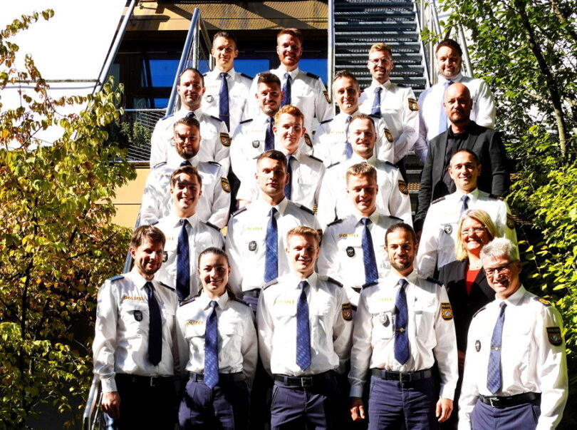 In den vergangenen zwei Jahren haben die Kolleginnen und Kollegen ihr Studium an der Hochschule für den öffentlichen Dienst in Bayern im Fachbereich Polizei absolviert. Nach erfolgreicher Abschlussprüfung werden sie nun mit Wirkung zum 1. Oktober zu Kommissarinnen bzw. Kommissaren ernannt. Zu diesem Anlass gratulierten neben Polizeivizepräsident Frank Hellwig auch Volker Klarner, Leiter der Polizeiinspektion Rosenheim und zugleich Ausbildungsleiter für die 3. Qualifikationsebene, Stefan Wannersdorfer aus dem Personalsachgebiet der Abteilung Polizeiverwaltung, sowie die Personalratsvorsitzende Birgit Manghofer den Absolventinnen und Absolventen und wünschten ihnen viel Erfolg in ihren neuen, verantwortungsvollen Funktionen.