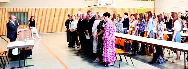 Schulamtsdirektor Sebastian Hutzenthaler begrüßte die Neuankömmlinge in der Goldbachhalle in Ergoldsbach, um sie auf ihre neue Aufgabe einzustimmen und einige organisatorische Angelegenheiten zu klären: „Und der Schulamtsbereich Landshut Stadt und Land gehört in Niederbayern zu den wenigen Regionen, wo es einen Schülerzuwachs gibt. Aus diesen Gründen haben wir in unserem Schulamtsbereich auch in Zukunft einen sehr hohen Bedarf an Lehrkräften für unsere Grund- und Mittelschulen.“ Auch Landshuts Oberbürgermeister Alexander Putz und Ergoldsbachs Bürgermeister Ludwig Robold richteten ihre besten Wünsche an die neuen Lehrkräfte: „Mit Kindern zu arbeiten, ist die schönste Aufgabe, die man sich vorstellen kann. Hoffentlich behalten Sie stets die Freude an dieser wichtigen Arbeit“, erklärten beide einhellig. Für den Landkreis gab der Landrat Peter Dreier gute Ratschläge mit auf dem Weg: „Mit Menschen zu tun zu haben, mit jungen Menschen zumal, bringt stets viel Verantwortung mit sich. Aber es ist auch spannend, jungen Menschen Kenntnisse zu vermitteln, mit ihnen zu diskutieren und sie dabei zu unterstützen, ihre Talente wie ihre Persönlichkeit zu entfalten.“
