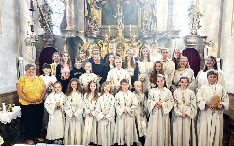 Seit der Erstkommunion im Mai haben sie sich mit viel Freude auf den Ministrantendienst vorbereitet, wobei sie von den Oberministrantinnen und Diakon Wolfgang Mösmang unterstützt wurden. Gemeinsam mit Diakon Wolfgang Mösmang und der Gemeindereferentin Jacqueline Egold durften die neuen MInis den Einführungs-Gottesdienst feiern. Doch wo ein Anfang ist, ist oft auch ein Abschied. Zwölf Ministrantinnen und Ministranten verabschiedeten sich nach jahrelangem Dienst am Altar und bekamen zum Abschied und zur Erinnerung ein Rauchfass mit Weihrauch und Kohle. Ebenfalls verabschiedeten sich aus dem Familiengottesdienstkreis zwei langjährige Mitglieder: Maria Eder und Alexandra Lederer, die in den letzten Jahren, teils über ein Jahrzehnt, die Familiengottesdienste mit viel Herzblut und Engagement gestaltet haben. Die Liebe, die in den Gottesdiensten steckt, war immer spürbar, so Jacqueline Egold, die ebenfalls Teil des Familiengottesdienstkreises ist.