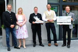 Für den Bürgermeister Daniel Mair hielt Christian Trattner im Anschluss noch eine Überraschung bereit. Als Dank für die Unterstützung und die gute Kooperation während der Bauphase spendet die Raiffeisenbank Aschau-Samerberg eG 1.000,00 Euro für die Jugendarbeit im Ort.