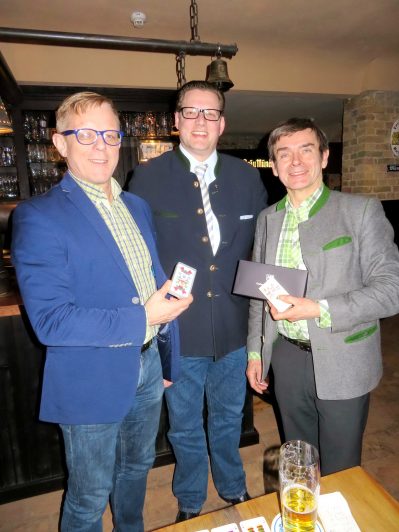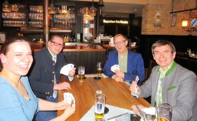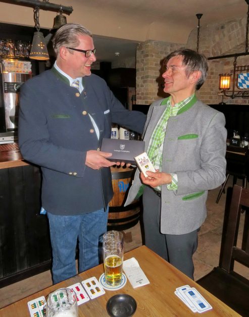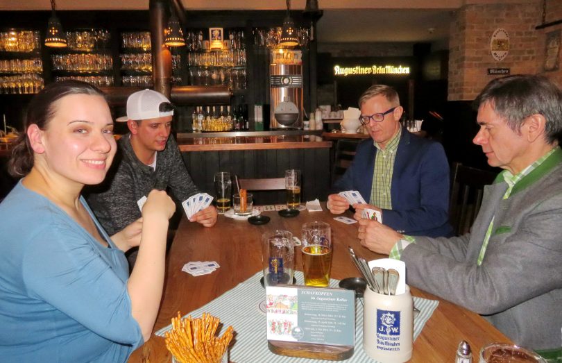 Die nächste Augustiner-Schafkopfrunde findet am Donnerstag, den 19. April 2018, um 19 Uhr in den Kellern des Zollpackhofs statt. Interessierte Anfänger und Fortgeschrittene des bayerischen Kult-Kartenspiels sind herzlich willkommen. Es ist ein geselliger Schafkopf-Workshop mit ausführlicher Erläuterung der Spielregeln durch den bayerischen Schafkopf-Experten Franz Mayr, stimmungsvoll eröffnet mit bayerischen Alphornklängen.