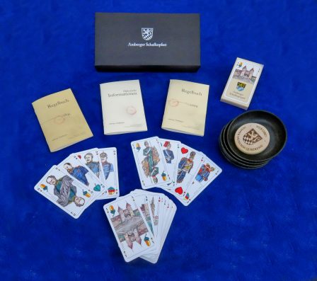 Es war eine Besonderheit, dass dieses Amberger Schafkopf-Regelbuch zusammen mit einem „Amberger Schafkopfset“, von Helmut Amberger, einem gebürtigen Amberger, Herrn Groenewold zur Eröffnung seines Augustiner-Schafkopfstammtisches überreicht wurde.