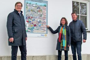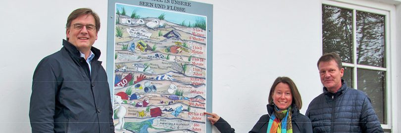 Seit Kurzem bereichern mehrere Tafeln zum Thema „Kein Müll in unsere Seen und Flüsse“ den Chiemsee. Diese überreichte (von links) Thomas Tramp vom Rotary Club Chiemsee dem Abwasser- und Umweltverband Chiemsee (AUV) mit Susanne Mühlbacher-Kreuzer als Umweltbeauftragte und Andreas Fenzl, Rimstings Bürgermeister und Vorsitzender des AUV.
