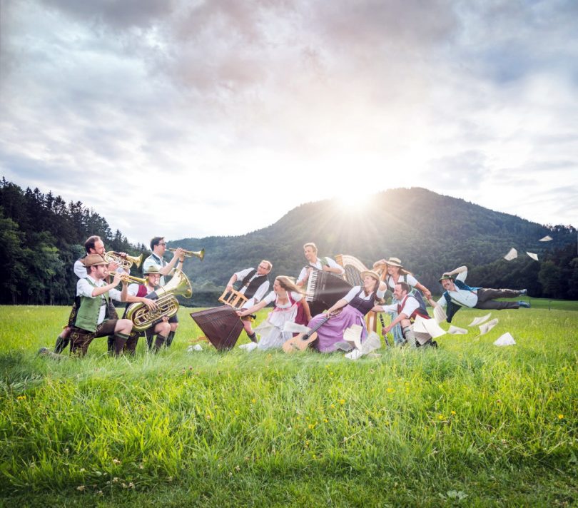 Die wohl vielseitigste Besetzung des Abends war ohne Frage die Gruppe „MusiSchmaus“. Mit Hackbrett, Harfe, Gitarre, Querflöte und Blockflöte und sogar einem Frauen-Dreigesang boten Monika Schroller, Martina Lang und Susanne Dräxl-Sinhart den Zuhörern einen ganz besonderen Ohrenschmaus. Nach einer kurzen Pause startete die „Lieblings-Musi“ mit einem schneidigen Marsch in den zweiten Teil der CD-Präsentation. Die erst vor kurzem neugegründete Besetzung unter der musikalischen Leitung von Sebastian Lang überzeugte mit ihrem schmissigen Klang mit Trompete, Basstrompeten, Klarinette, Tuba, Akkordeon und Gitarre. Auch hier wurden den Zuhörern Eigenkompositionen und neu arrangierte Klassiker von Sebastian Lang dargeboten, welche auch auf der neuen CD zu hören sind.