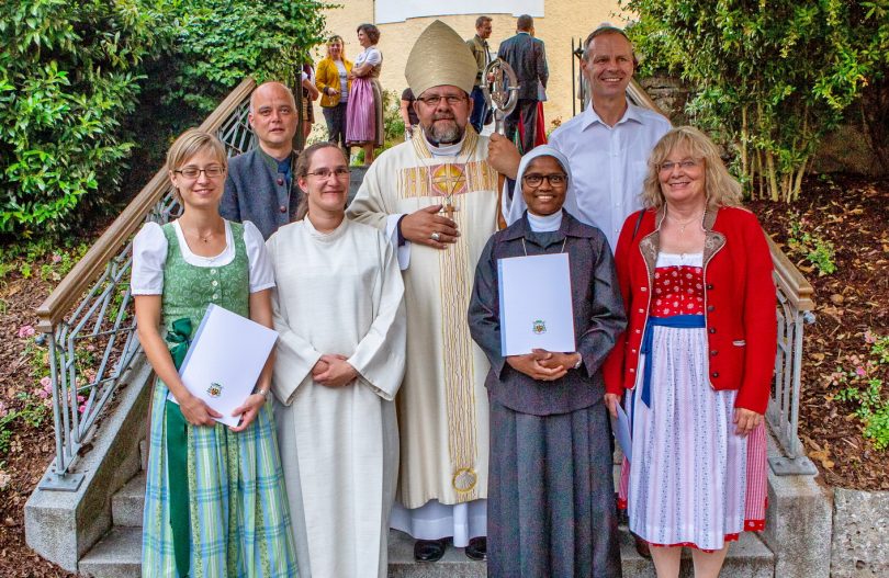 Sr. Juliana Michaelsamy, die neue Mitarbeiterin in der Pastoral; Michael Leberle für die Pfarrei Prien, Christian Podmirseg für den Pfarrverband Bad Endorf, Gabriele Weiher-Micheel für die Pfarrei Bernau und Magdalena Wöhrer für die Kuratie Hittenkirchen.