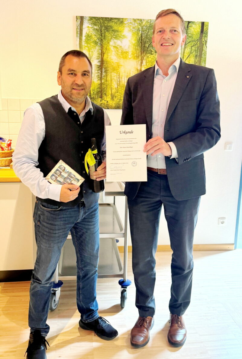 Erster Bürgermeister Simon Frank und der Leiter des Standesamtes, Stefan Kronier, händigten Anton Hinterberger nun formell die Bestellungsurkunde aus.Anton Hinterberger ist bereits seit April dieses Jahres im Standesamt tätig und hat das Grundseminar der Akademie für Personenstandswesen in Bad Salzschlirf samt Prüfung erfolgreich absolviert.
