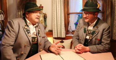 Foto: Hötzelsperger – 1. Tubist Karl-Wilhelm Hultsch ist neuer Dirigent der Priener Blaskapelle – 2. von links: Michael Anner junior, Karl-Wilhelm Hultsch und Stefan Hackenberg.