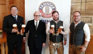 (v. l. n. r.): Max Gotz (Oberbürgermeister der Stadt Erding), Werner Brombach (Inhaber der Privatbrauerei ERDINGER Weißbräu), Patrick Schmidt (neuer Festwirt) und Mario Pianka (ehemaliger Festwirt) freuen sich schon auf das diesjährige Herbstfest in Erding.