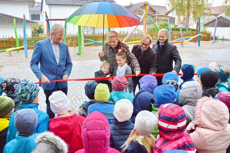 Die Schülerinnen und Schüler der Grundschule in Rosenheim-Westerndorf St. Peter können sich über einen neuen Pausenhof freuen. Mit großzügiger Unterstützung der Sparkasse Rosenheim-Bad Aibling entwarf Landschaftsarchitekt Felix Finsterwalder in Zusammenarbeit mit der Stadtgärtnerei Rosenheim eine attraktive Kletter- und Spiellandschaft, an der die Schülerinnen und Schüler Kinder ihre Geschicklichkeit und ihre Bewegungskoordination austesten können. Dazu finden sich im neuen Pausenhof auch ein neues Fußballtor, ein Trampolin, eine Tischtennisplatte, einen Naschgarten und neue Sitzgelegenheiten vor.
