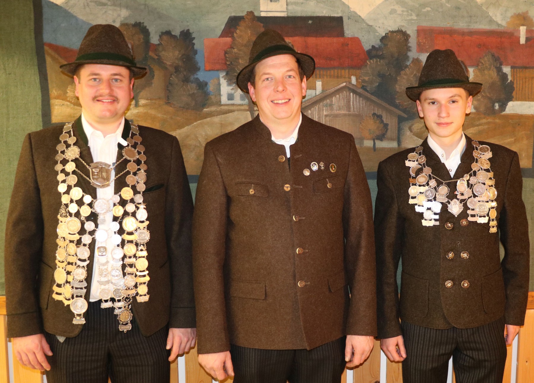 Königsschießen der Schützengesellschaft „Chiemgauadler“ Umrathshausen: Schützenkönig Wolfgang Furtner (links) und Jungkönig Lorenz Klein (rechts) und Schützenmeister Sepp Staudacher (Mitte)
