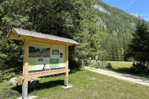 Auf dem Weg von der Nationalpark-Informationsstelle Klausbachhaus bis hinauf zur Halsalm informieren an sechs Stationen großformatige Tafeln über das Thema „Aasökologie“.
