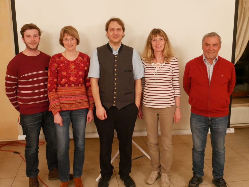 Bericht und Foto: Heinrich Rehberg – Die neu gewählte Vorstandschaft der Garten- und Blumenfreunde Sachrang: Florian Wiedmann, zweiter Kassier – Christine Danner, Schriftführerin – Michael Vordermayer, zweiter Vorsitzender – Ute Hacherer, erste Vorsitzende – Jakob Trixl, Kassier.