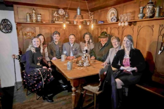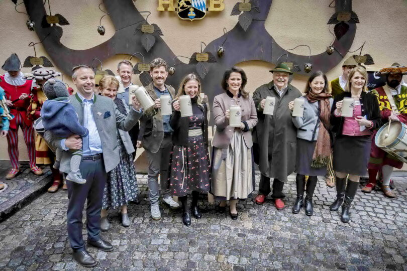 - Ein wichtiges Thema im neuen Museum: die bayerische Wirtshauskultur, dargestellt in einer eigenen Szenerie mit Birgit, Christa und Maximilian Sailer vom Hofbräuhaus Traunstein, Oberbürgermeister Christian Hümmer, Staatsministerin Michaela Kaniber, Senior-Bräu Bernhard Sailer, stellvertretende Landrätin Resi Schmidhuber und Marketingleiterin Katharina Gaßner.