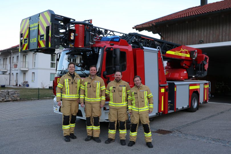 „Lange hat es gedauert, aber jetzt haben wir unser Drehleiterfahrzeug DLK 23/12 für die Aschauer Feuerwehr bekommen“. Kommandant Tobias Brinkmann und sein Stellvertreter Fabian Schneikart sind begeistert von ihrem neuen Fahrzeug. Bereits bei mehreren Einsätzen in den letzten Tagen rückte die Drehleiter mit aus. Mit diesem Fahrzeug wird eine wichtige Lücke im Sicherheitskonzept der Gemeinde Aschau und des Landkreises gefüllt und ein wesentlicher Beitrag zur Erhöhung der Sicherheit der Bürgerinnen und Bürger in Aschau und der Region geschaffen werden.