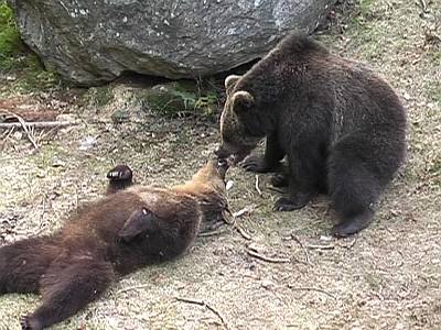 Vom zusätzlichen Trubel durch die Bauarbeiten in unmittelbarer Nachbarschaft zu ihrem Gehege lassen sich die beiden Braunbären offensichtlich nicht stören. „Die beiden bleiben schließlich auch entspannt, wenn mehrere Schulklassen gleichzeitig vor ihrem Gehege stehen. Benny scheint die Aufmerksamkeit sogar regelrecht zu genießen“, erklärt die erfahrene Tierärztin und wird in ihrer Aussage unmittelbar bestätigt, als bald 22 Jahre alte Braunbär es sich auf einem gut einsehbaren Felsen im Gehege in der Herbstsonne bequem macht. „Und falls sie sich doch mal zurückziehen wollen, stehen unseren Bären immerhin 1,4 Hektar naturbelassene Anlage zur Verfügung. Uns ist sehr wichtig, dass sich unsere Tiere hier wohl fühlen und wir sie gut betreuen können. Da ist das neue Bärenhaus ein weiterer wichtiger Baustein.“ Noch müssen sich Luna und Benni ein wenig gedulden, denn bezugsfertig wird ihr neues Heim nicht vor Ende kommenden Jahres sein.