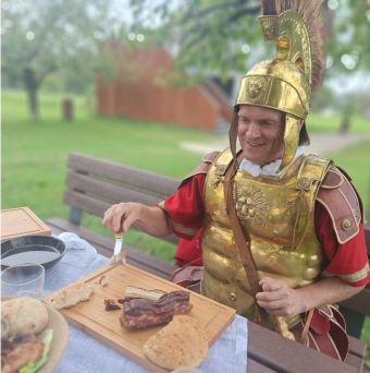 Genießen wie ein echter Römer! Karl Necker zeigt, wie man an diesem Lieblingsplatz nicht nur Geschichte erlebt, sondern sich auch stilecht wie ein Legionär stärkt. Foto: E. Honold
