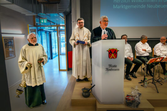 Zur offiziellen Zeremonie fanden sich zahlreiche Ehrengäste ein, darunter Landrat Otto Lederer, Landtagsabgeordneter Sepp Lausch sowie Bürgermeister aus den Nachbargemeinden und Tirol. Auch ehemalige Bürgermeister Neubeuerns, Bürgermedaillenträger, Vereinsvorsitzende und Gemeinderäte wohnten der Veranstaltung bei. Die Festrede hielt Stefan Schelle, Bürgermeister von Oberhaching und Bezirksverbandsvorsitzender Oberbayern des Bayerischen Gemeindetags. Dabei segnete der katholische Pfarrer Christoph Rudolph und der evangelische Pfarrer Thomas Löffler das Gebäude.