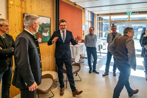 Bürgermeister Christoph Schneider führt durch das neue Rathaus