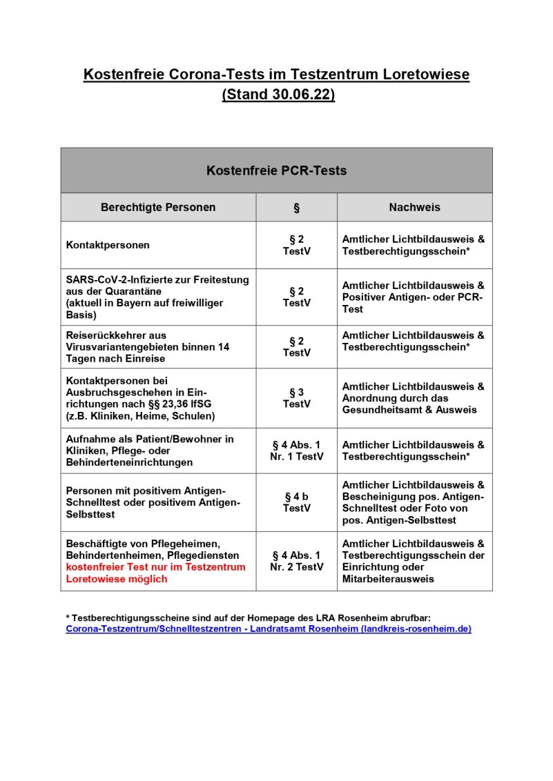 Eine Übersicht über die verschiedenen Berechtigungen für Coronatests im Rosenheimer Testzentrum ist unter https://www.rosenheim.de/covid-19.html abrufbar. Die Öffnungszeiten von Montag bis Samstag jeweils von 07:00 Uhr bis 15:00 Uhr sowie an allen Sonn- und Feiertagen von 09:00 Uhr bis 13:00 Uhr bleiben unverändert.