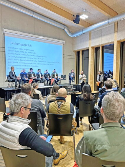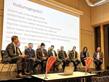 Mit einem Informationsstand vertreten waren auch die Berchtesgadener Milchwerke, an dem die Gäste des Abends regionale Produkte probieren konnten – hergestellt unter anderem aus der Milch, die von den Prientaler Landwirten geliefert wird. Zu Beginn ging Erster Bürgermeister Simon Frank darauf ein, wie es zur Ausarbeitung und Erstellung eines neuen Tourismusleitbilds für das Priental gekommen sei. Der bisherige Tourismusleitfaden stammte aus den Jahren 2015/2016 und wurde im Rahmen des aktuellen Prozesses umfassend überarbeitet und vollständig neu aufgesetzt. Die wichtigste Neuerung: Ein breit angelegter Bürgerbeteiligungsprozess, an dem etwa 30 Personen beteiligt waren, sowie ein einstimmiger Gemeinderatsbeschluss verankern das Leitbild nun fest in der Gemeindepolitik – ein klares Zeichen für die Bedeutung des Tourismus als zentralen Wirtschaftsfaktor. Das neue Tourismusleitbild beschreibt die Werte, für die Aschau i.Chiemgau steht, benennt und charakterisiert die wichtigsten Zielgruppen und fasst die Themen zusammen, die den Ort prägen. Zudem formuliert es die Ziele, die sich die Tourismus-Gemeinde bis 2035 gesetzt hat. Ergänzend wurden umfangreiche Daten aus der Studie des dwif (Deutsches Wirtschaftswissenschaftliches Institut für Fremdenverkehr e. V.) vorgestellt. In einer kurzweiligen und lebendigen Podiumsdiskussion beleuchteten Vertreter aus Tourismus, Gewerbe, Gastronomie, Forst, Wirtschaft und der Kampenwandseilbahn die Bedeutung des Tourismus für die Region. Vermieter und Gastwirt Paul Kink (Café Pauli) hob Natur, Ruhe und das starke gastronomische Angebot als zentrale Stärken hervor. Eric Zbil, Geschäftsführer der Kampenwandseilbahn, betonte die hohe Wertschöpfung für den Ort. Andreas Fischer (Gewerbeverein) verwies auf die große Bedeutung des Tourismus für zahlreiche Betriebe – weit über Hotellerie und Gastronomie hinaus. Moritz Sporer (dwif) lobte den politischen Willen, den Tourismus strategisch weiterzuentwickeln.
