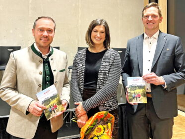 Fotos Winklhofer – _1: Aschaus Tourismuschef Herbert Reiter (links), Katharina Gasteiger (Koordinatorin des neuen Leitbilds) und Aschaus Erster Bürgermeister Simon Frank (rechts)