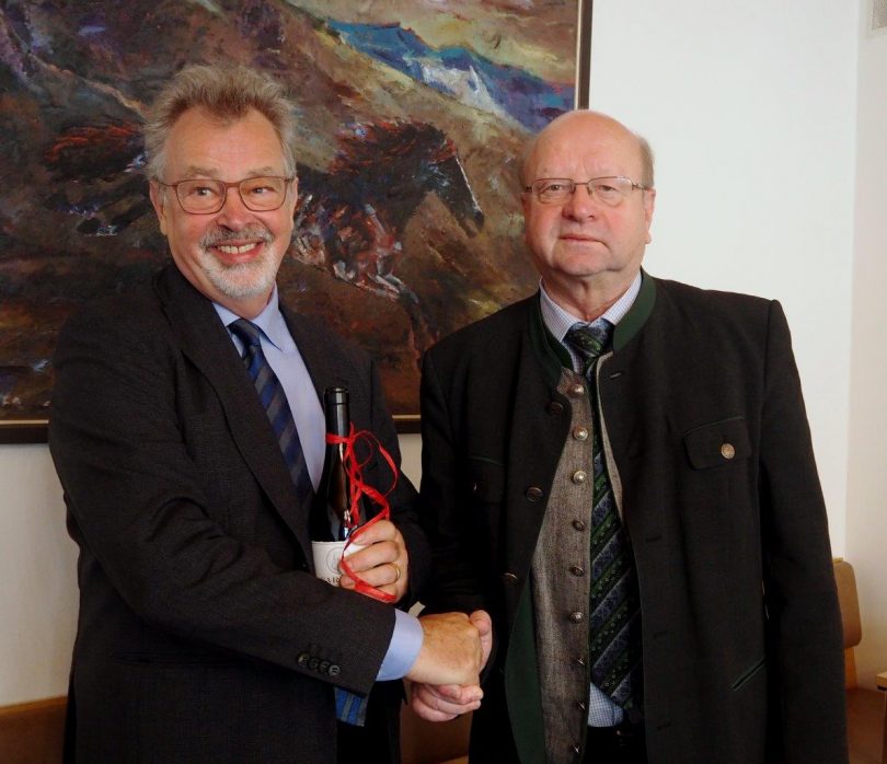Foto: Hermann Steinmaßl, Altlandrat und 1. Vorsitzender des “Musiksommer zwischen Inn und Salzach” sprach Wolfram Gaul (links) seinen besonderen Dank für die geleistete Arbeit in der künstlerischen Leitung aus.