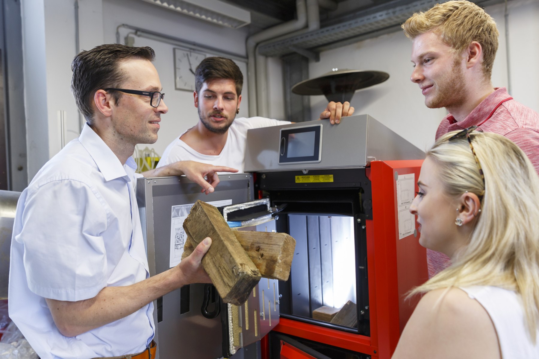 Studierende mit Prof. Dr. Frank Buttinger im Labor für nachhaltige Wärmeerzeugungsanlagen und Energiemonitoring