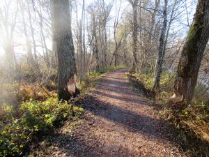 Wie das nachstehende, bei einem heutigen Spaziergang aufgenommene Foto zeigt, haben die Nagetiere gerade zwei Bäume direkt am Uferweg in Bearbeitung:
